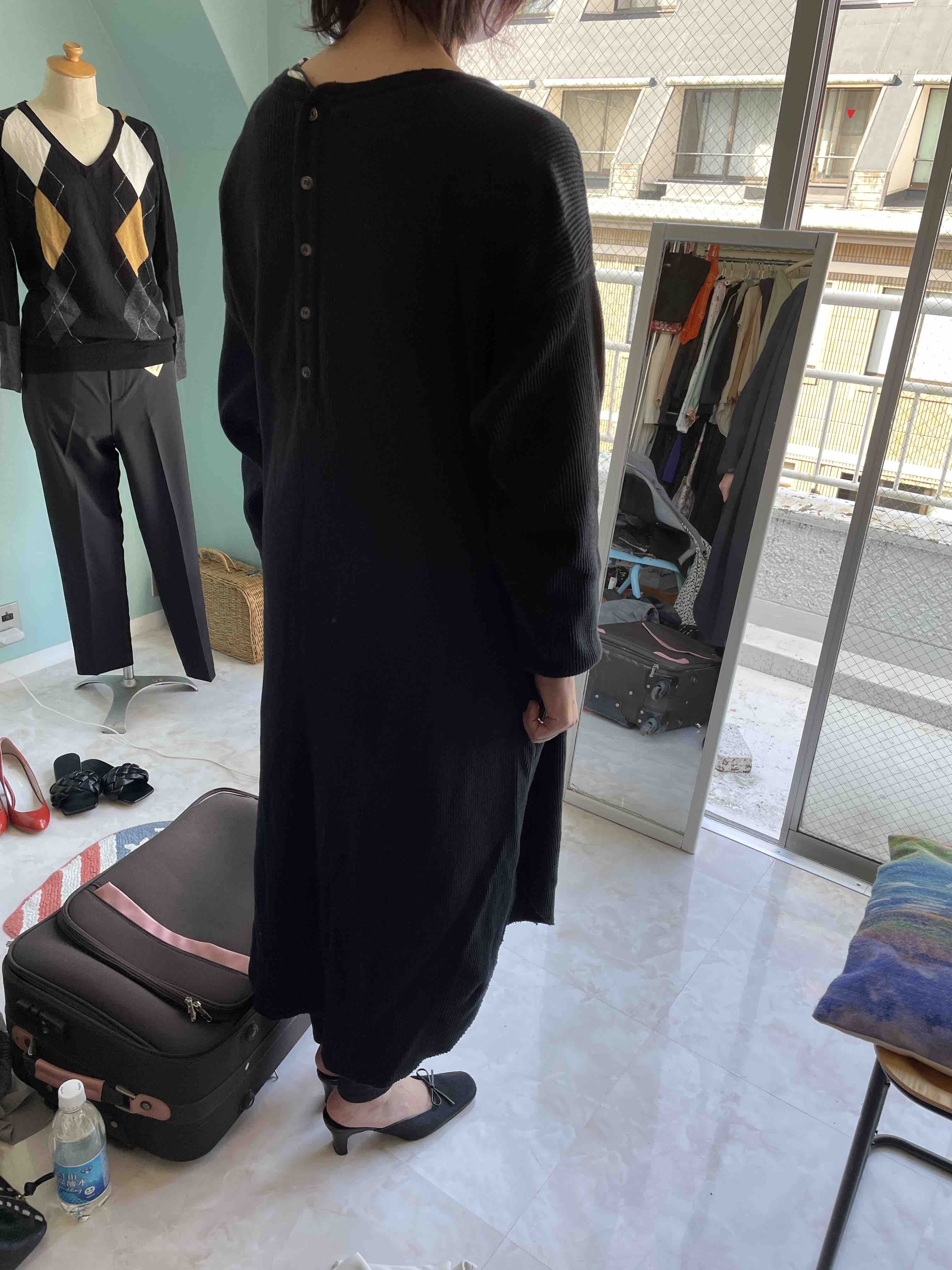 黒ニットで