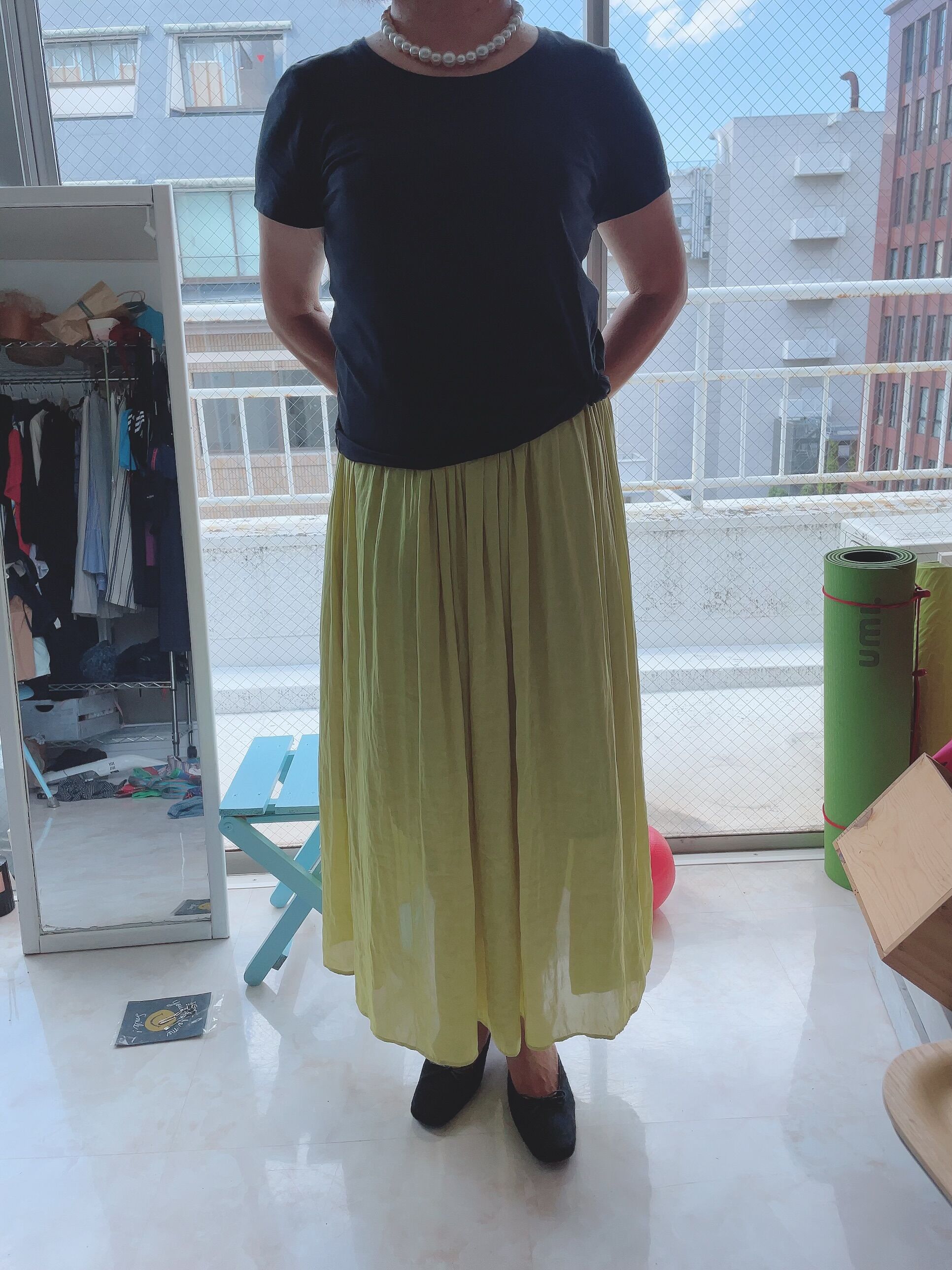 ウエストゴムのロングスカート は